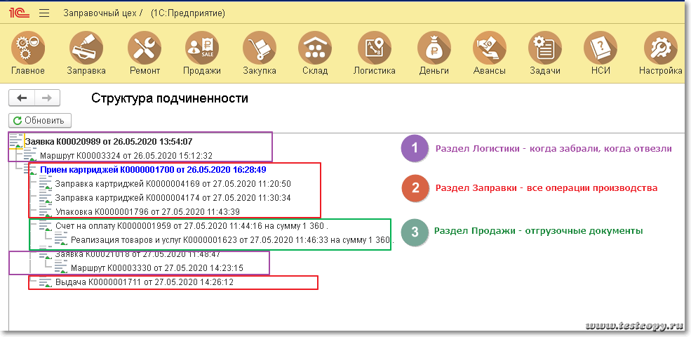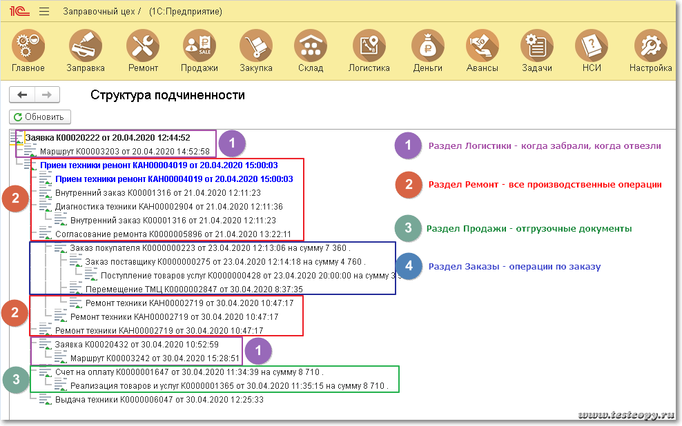 Заправочный цех, 9. Техническая поддержка, 8. Обновления, 7. Мобильное пиложение, 6. Логистика, 5.3 Отчет Склад8, 5.2 Отчет Склад7, 5.1 Отчет Продажи3, 4. Рабочий стол, 3.4 РМ МенеджерПро, 3.3 РМ Менеджера, 3.2 РМ Инженер, 3.1 РМ Заправщика, 2. Структура подчиненност..., 1. Структура подчиненност..., 3, 2, 1