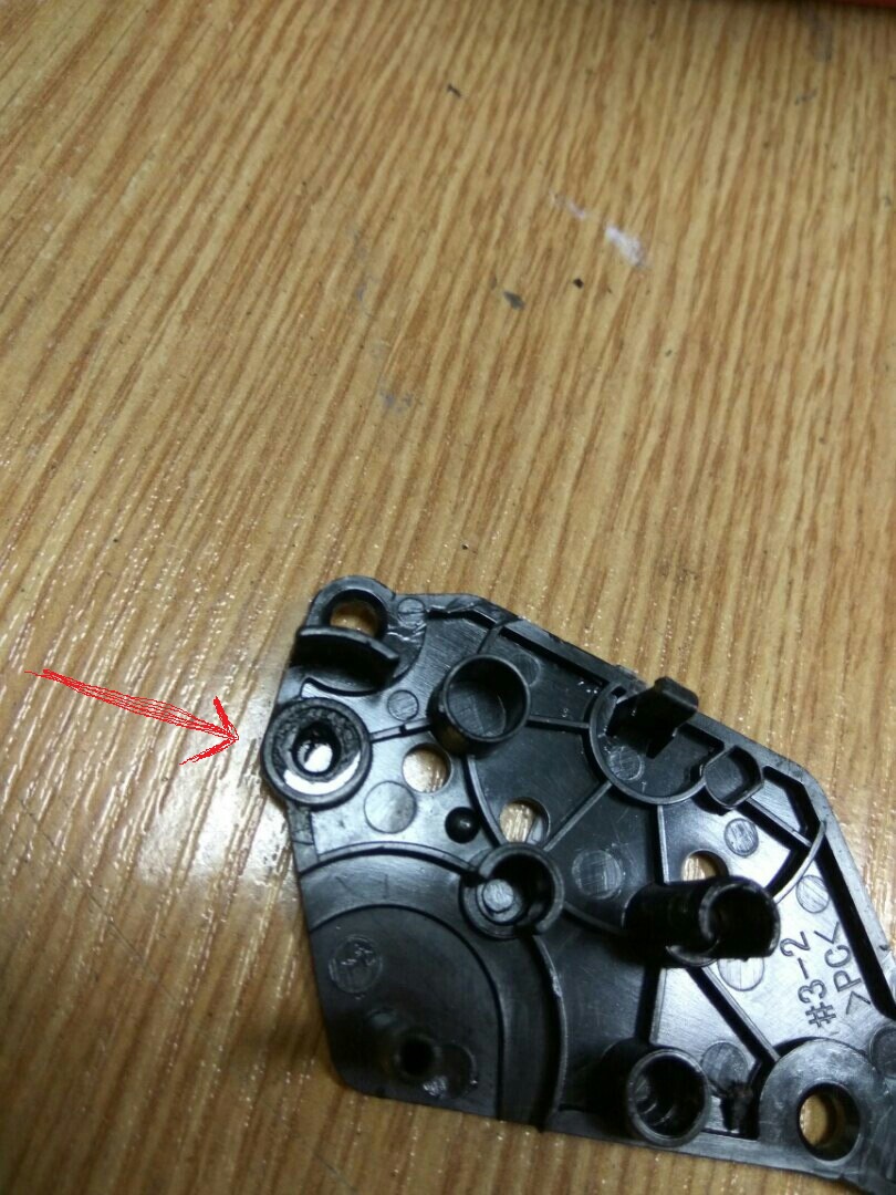 Добрый день, камрады!Наверняка наблюдали на сабжевых картриджах, после N-ой заправки бледноту по краю. Виной, как я понял, является вот эта выработка на боковушке. В этом отверстии "сидит" металлический вал.