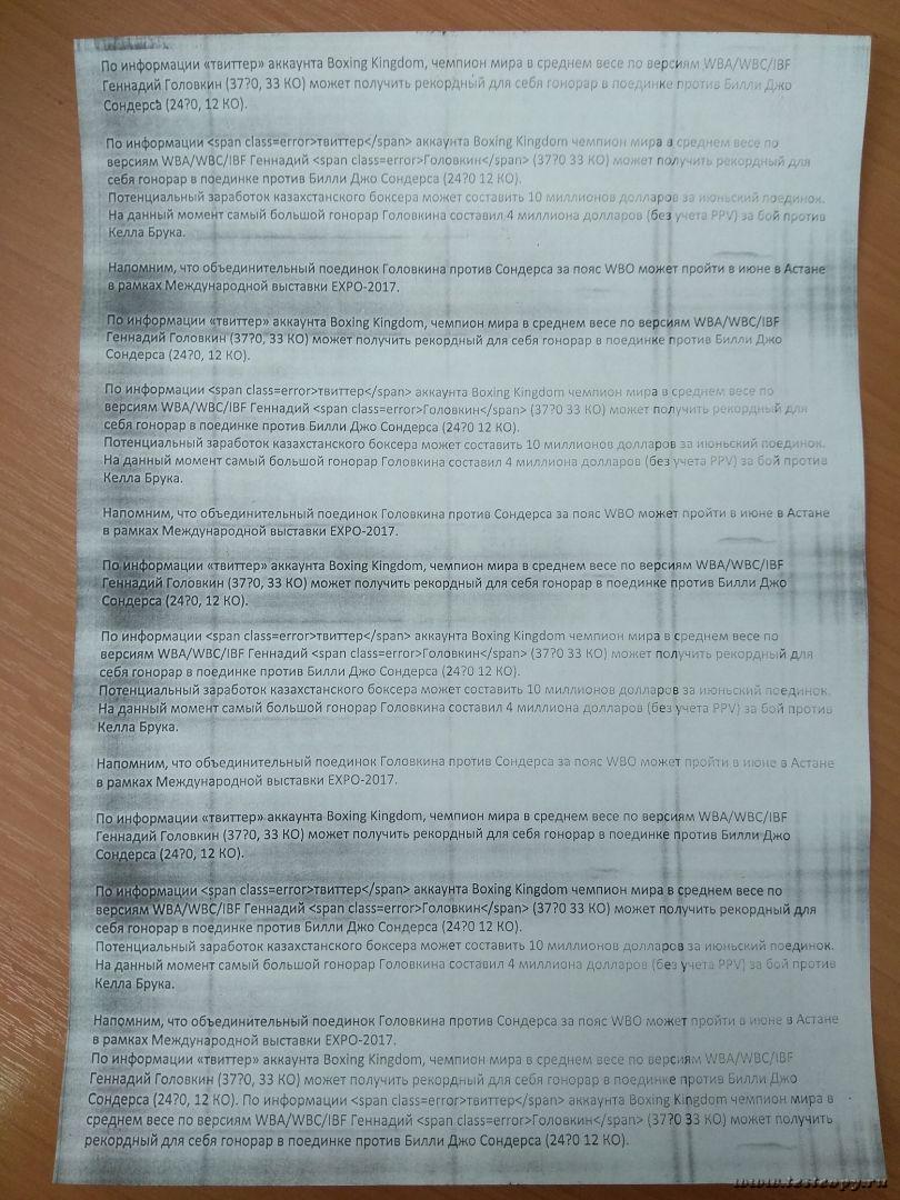 В автоматическом режиме совсем бледно печатает, как водяной знак, а на максимальной яркости, наоборот серый фон появляется и по краям на всю длину листа чернота.