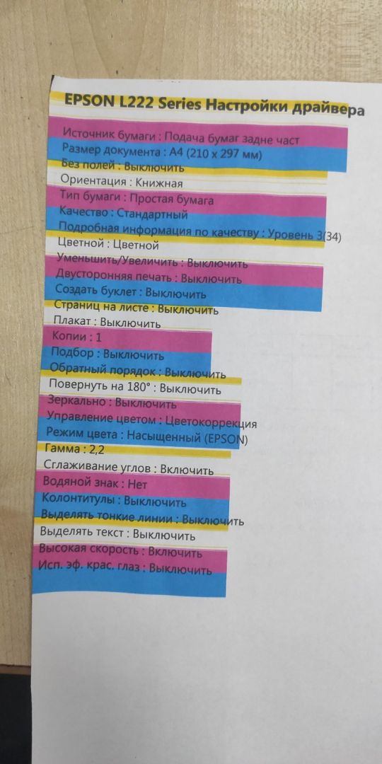 Столкнулся с такой проблемой, может и плохо искал на просторах интернета а может и не правильно что то делал может кто то подскажет. В общем принтер при печати текста заливает последний всеми тремя цветами по очереди. Я не понимаю куда копать может кто сталкивался.