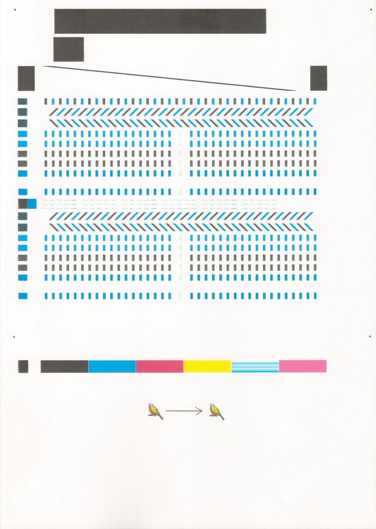 Дело в том, что фото не печатались очень давно 4+ лет. И за это время лишь у 2 цветов незначительно забились дюзы? Так то оно конечно очень похоже на забитость дюз. Я попытался прочистить - примерно 50 листов А4 распечатал в режиме фотопечати светло синей заливки страницы. Характер полосения не изменился и на каждой странице вверху идентичный узор более сильного полосения. Не должны забитые дюзы на каждом листе сверху 5 мм печатать плохо, а потом весь лист лучше. Это больше похоже словно в задании на печать такой узор полосения.