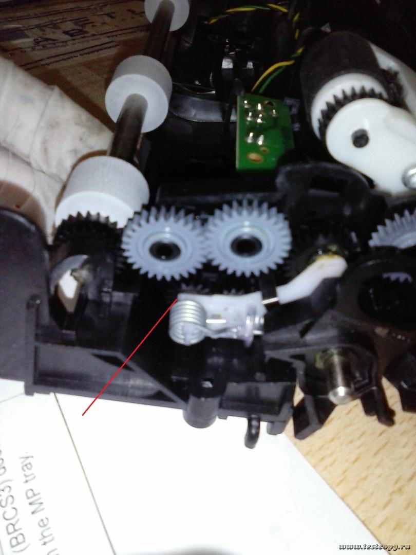 Сам спросил, сам и отвечаю. Победил этого уродца проблема оказалась в отсутствии маленькой шестеренки (привет тому кто его разбирал ) из-за чего не было привода на задние ролики протяжки (на фото слева),а ролик захвата без их помощи не справлялся. Разобрал похожий аппарат и этот и методом сравнения выявил отличие.