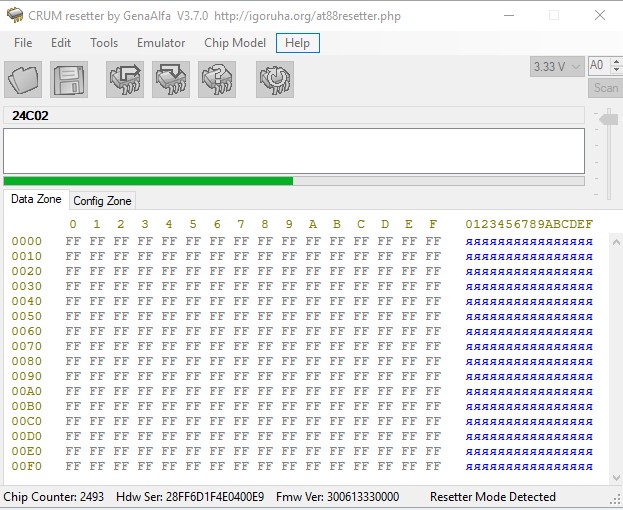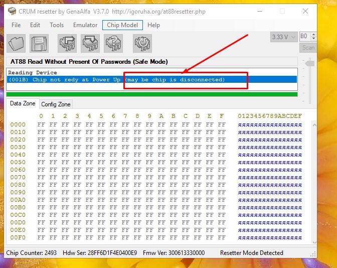 На CrumResetter выбери чип и нажми "скан".После это все шьется.
