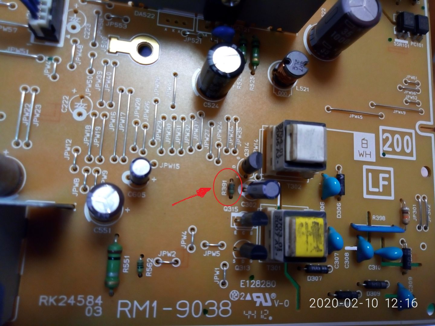 Осмотр БП визуально привел к одному сгоревшему резистору, на плате маркировка R391. цвета выгорели,