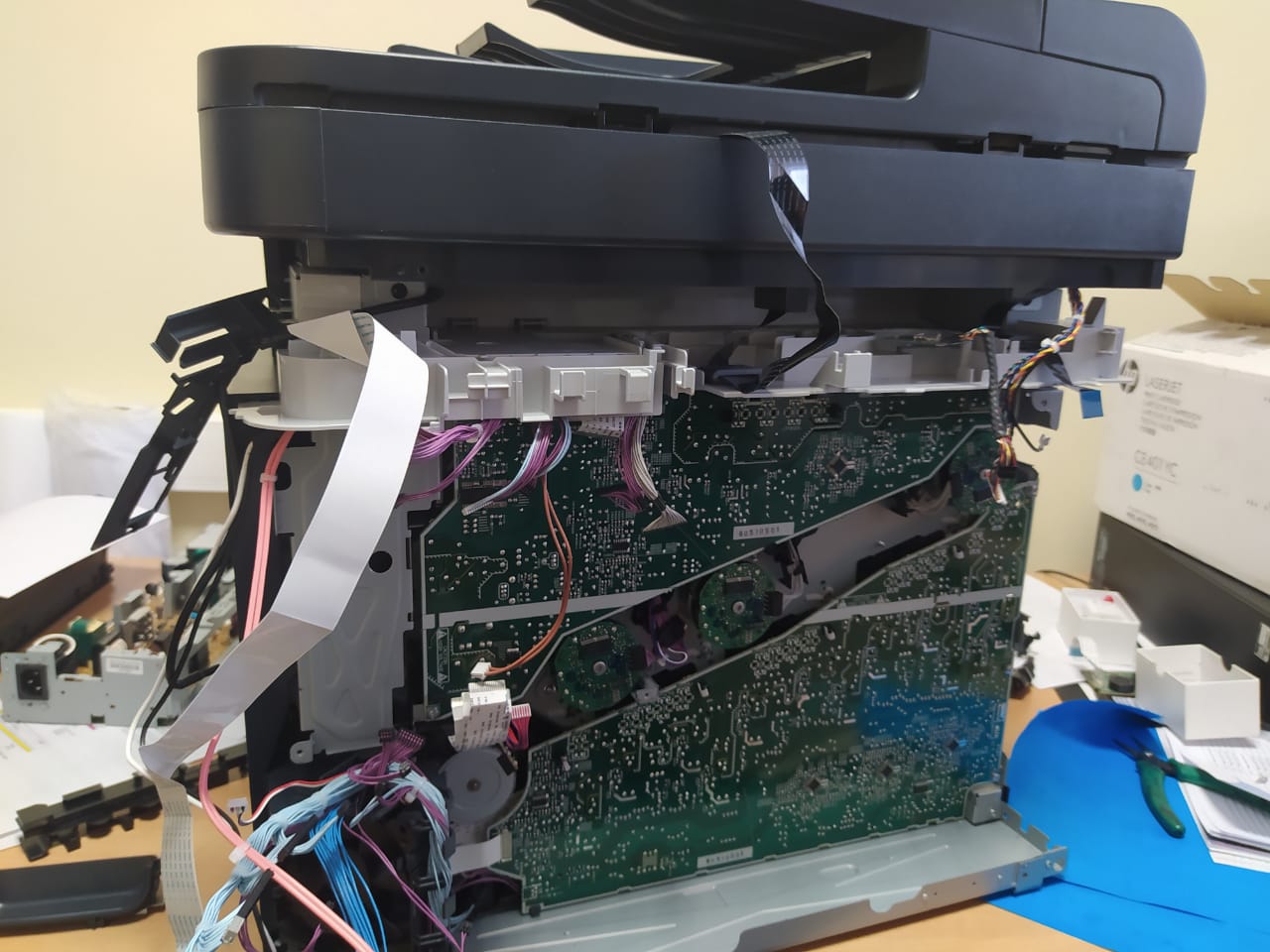 Разобрал принтер. Все цивильно (В прошлом году шлейф лазера был не до конца воткнут у нового принтера, мало ли повезет и в этот раз).
