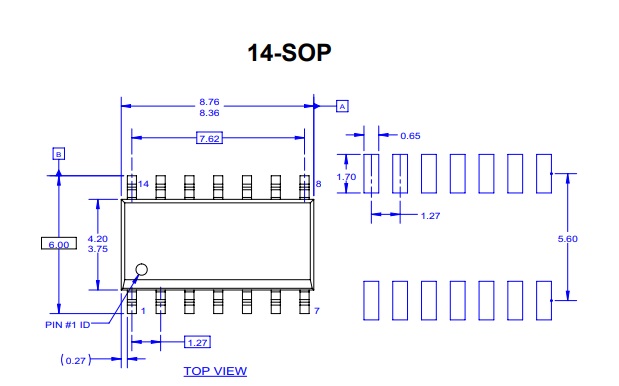 Кто его знает... На некоторых чертежах размах ножек у корпуса SOP-14 не 6,00 мм, а 6,4±0,4 мм. Например, по ссылке: https://www.chipdip.ru/info/soic-packag ... d-circuits