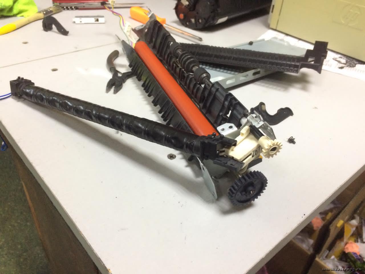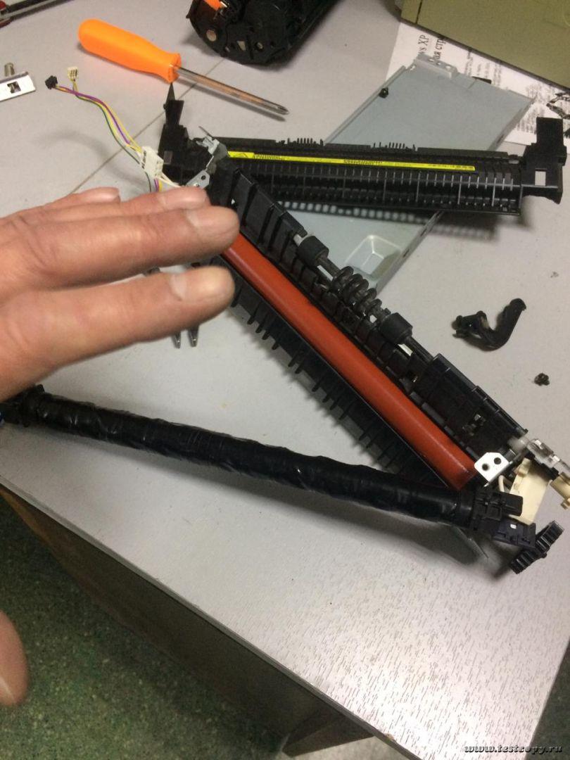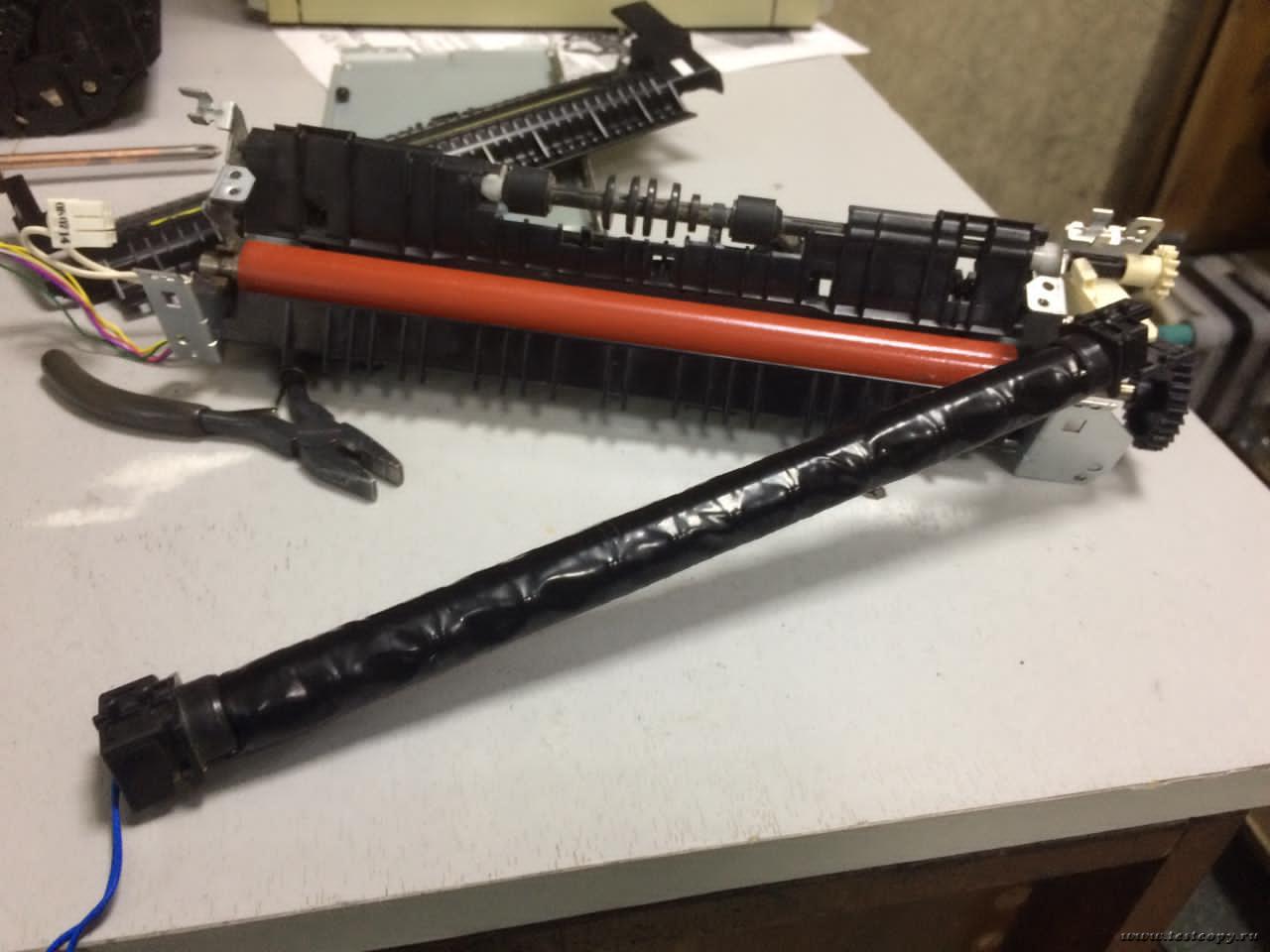 Принёс вот ваха плача принтер мне --- фотки прилагаю. вместо термоплёнки - намотан на линейку-грелку скотч чёрный ... не-было видать в сервисе термоплёнки.