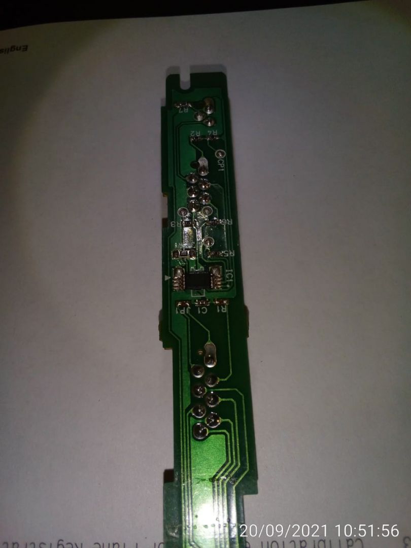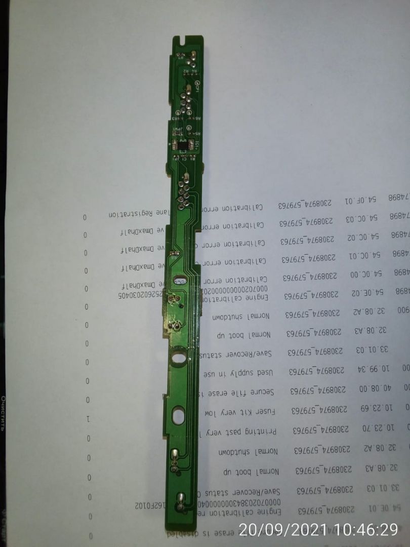 Почесав затылок, пришел к выводу, что аппарат должен сначала определить, что установлен новый узел, а потом дать возожность сбросить счетчик. Но как он должен определять? Разобрал печку ещё раз, теперь в поисках пережигаемого резистора. Всё окзалось намного проще и сложнее одновременно. В термоузле имеется fsr sub pca RM2-7162 (не гуглится) А вот на ней есть мелкосхема IC1. Маркировки кроме ключа на корпусе микросхемы не имеется. Я предполагаю, что это какая-то память.Перехожу к проверке своих предположений. На горячую произвожу замену термоузла на термоузел со второго аппарата (с остаточным значением ресурса). Кинулся в меню провести сброс и понимаю, что индикации ошибки и сообщения о необходимости замены печки нет, аппарат в готовности. Проверяю: Набор термоэлемента- ОК, на Стр. сост. расх. матер. Набор термоэлемента - 100%