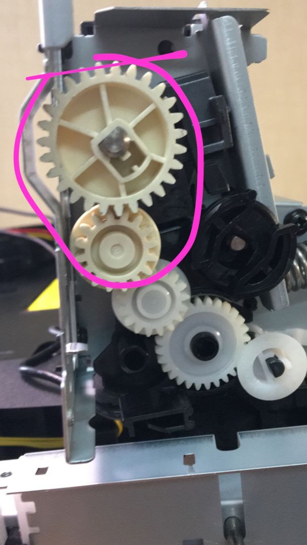 Доброго времени. Поступил данный пациент с жалобой на треск при работе. Картриджи и печка не заклинены. По отдельности все вращается. Подскажите пожалуйста в какую сторону смотреть. Треск от шестерней находящихся на печке.