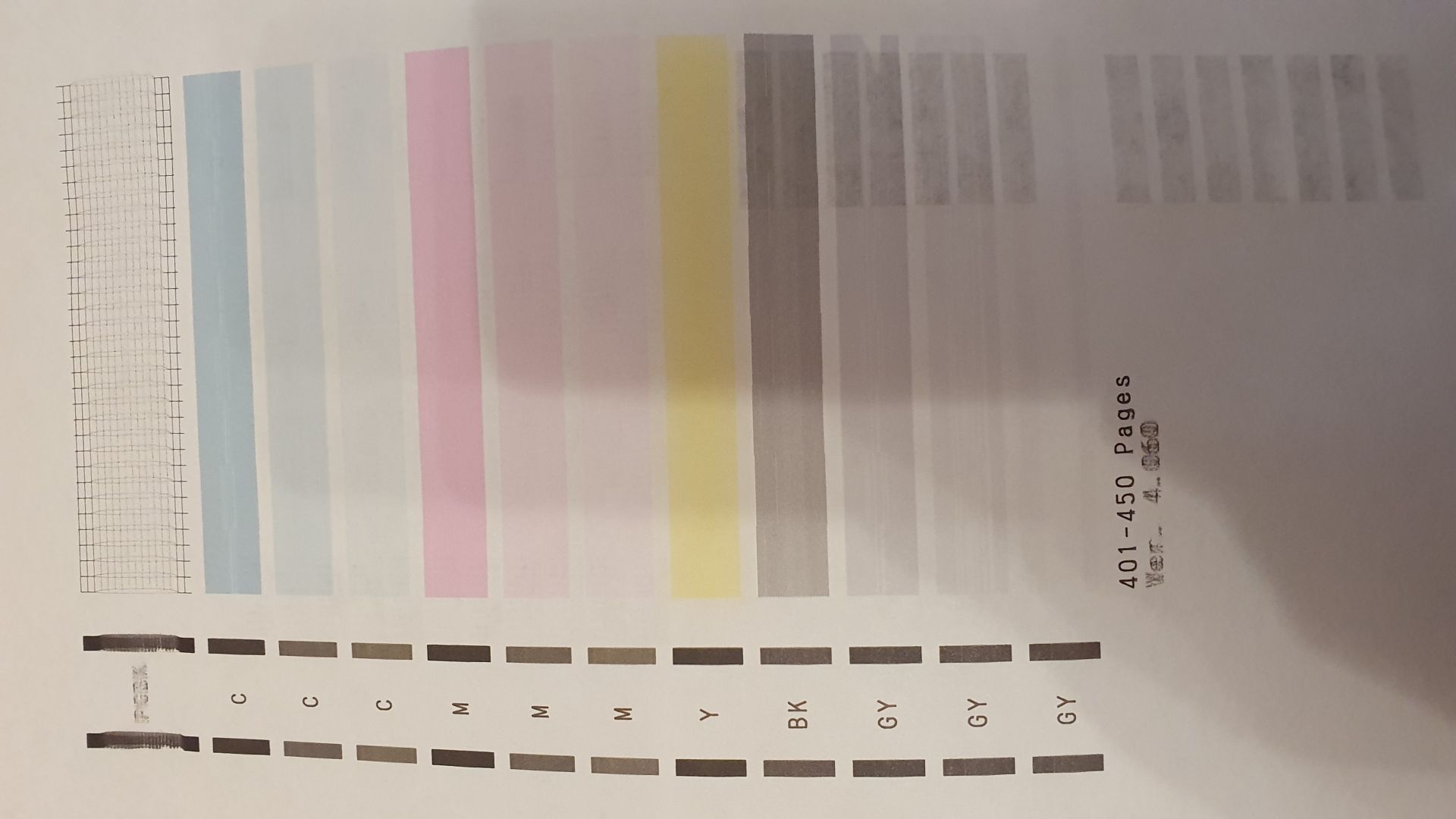 Здравствуйте. Подскажите в чем может быть проблема. Ни с того, ни с чего принтер начал так своеобразно печатать (фото приложу, на серые, вертикальные полоски не обращайте внимание, это просвечивается печать с другой стороны) При черно-белой печати текста и иногда при печати графической цветной картинки, когда требуется черный цвет, окантовка (мне так показалось) Все действия по очистке, настройке головок в меню производил, ничего не поменялось. Даже печатающую головку доставал, по виду состояние отличное (сравнивал по фото с проблемными) Чернила все в норме, проверено не раз, как отдельно большой черный картридж, так и черный поменьше.