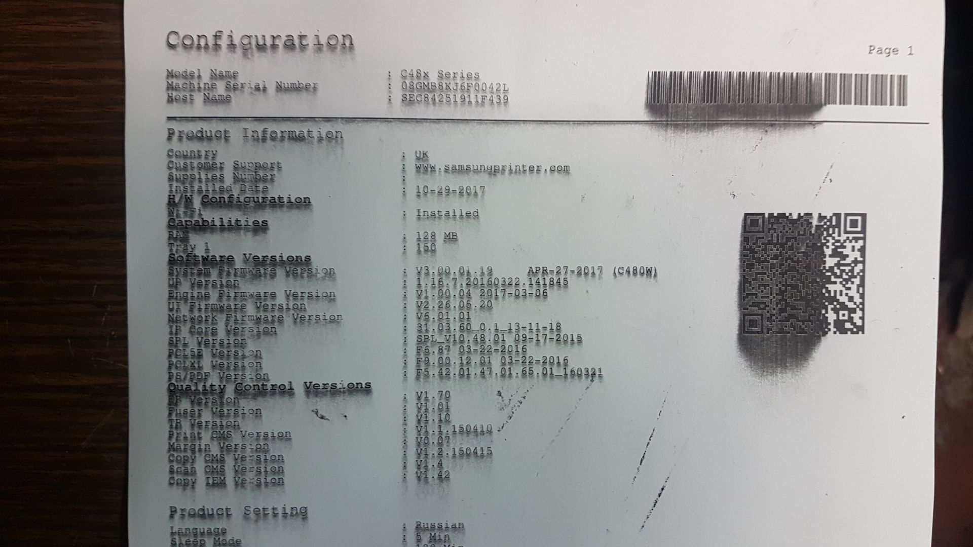 цветной гнус SL-C480 печатает плохо, на листе 5см с правого края печатается нормально (и чб, и цвет), дальше через весь лист сплошняком мазня.