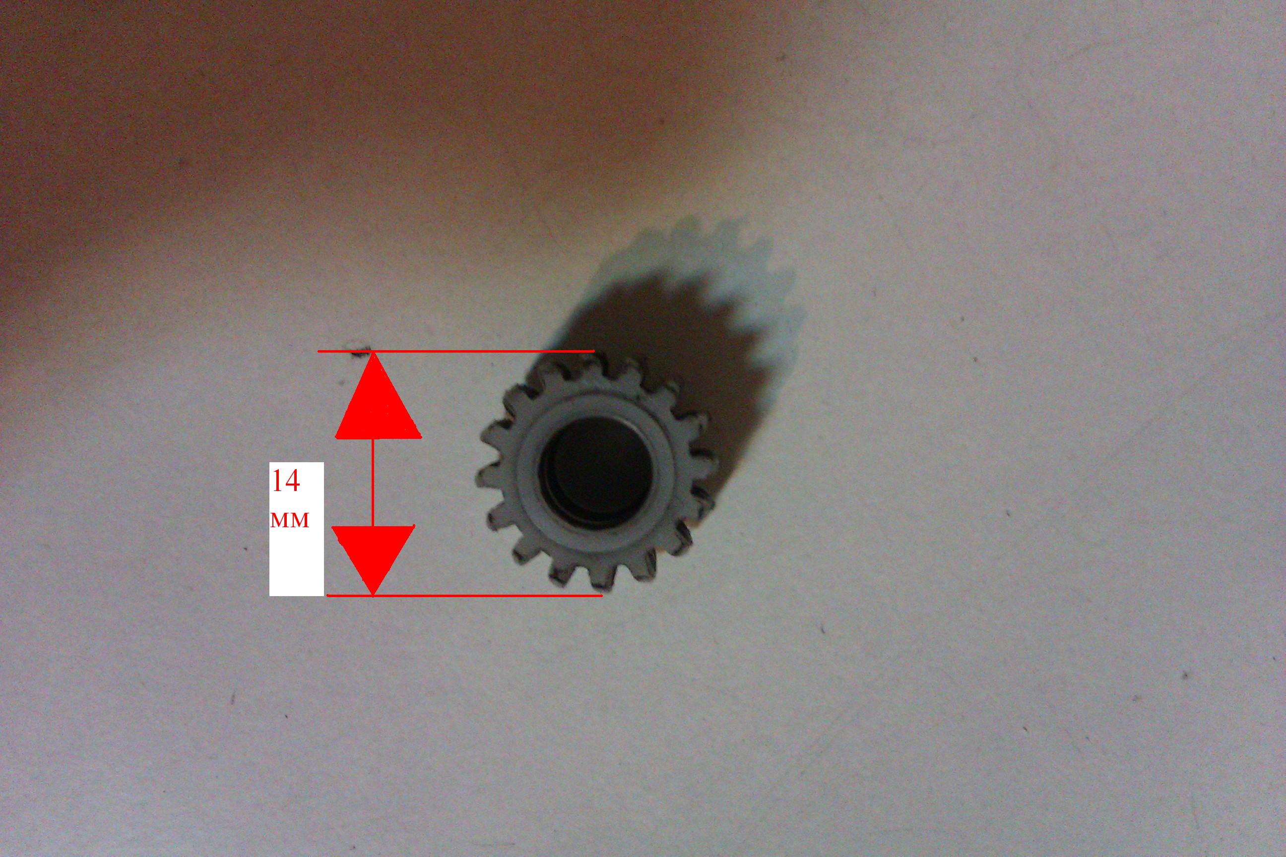 Помогите, пожалуйста, идентифицировать шестерню для Ricoh MP 161. Шестерня находится в блоке проявки (там где девелопер). Оригинальная шестерня - с зубьями под углом. Мы заменили на прямые. Взяли из какого-то принтера, но забыли в каком. Подскажите, пожалуйста, в каком аппарате можно найти такого диаметра - 14мм. Внутреннее отверстие просверлим сами.