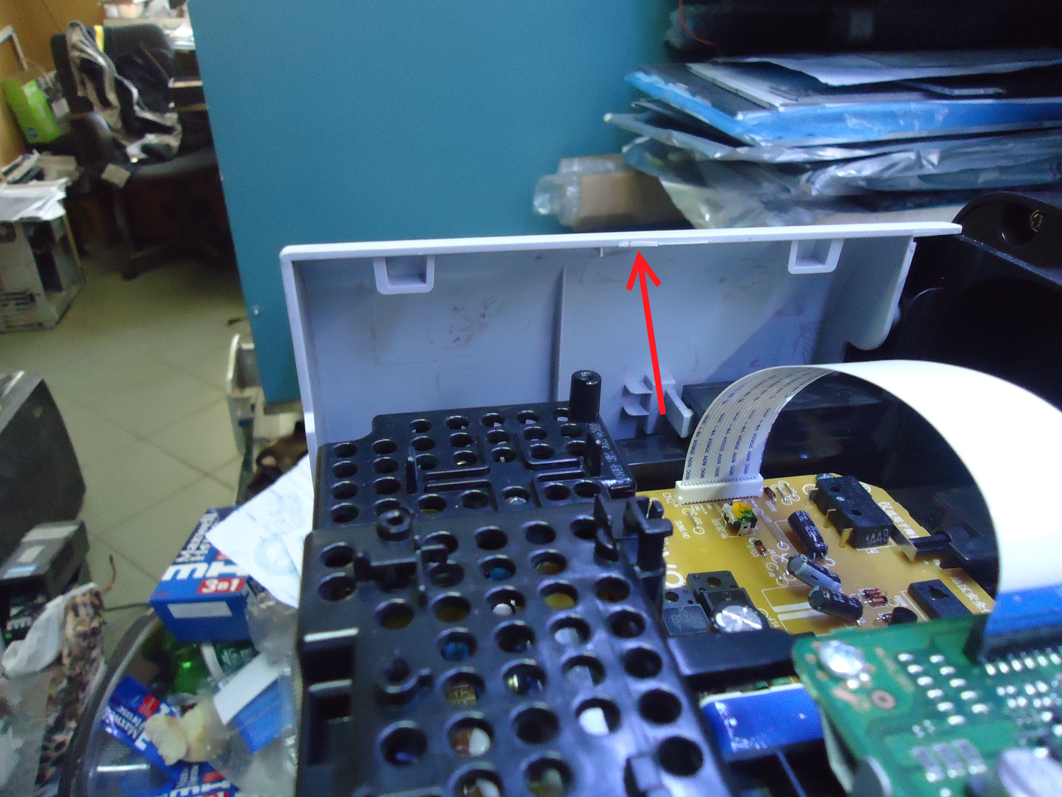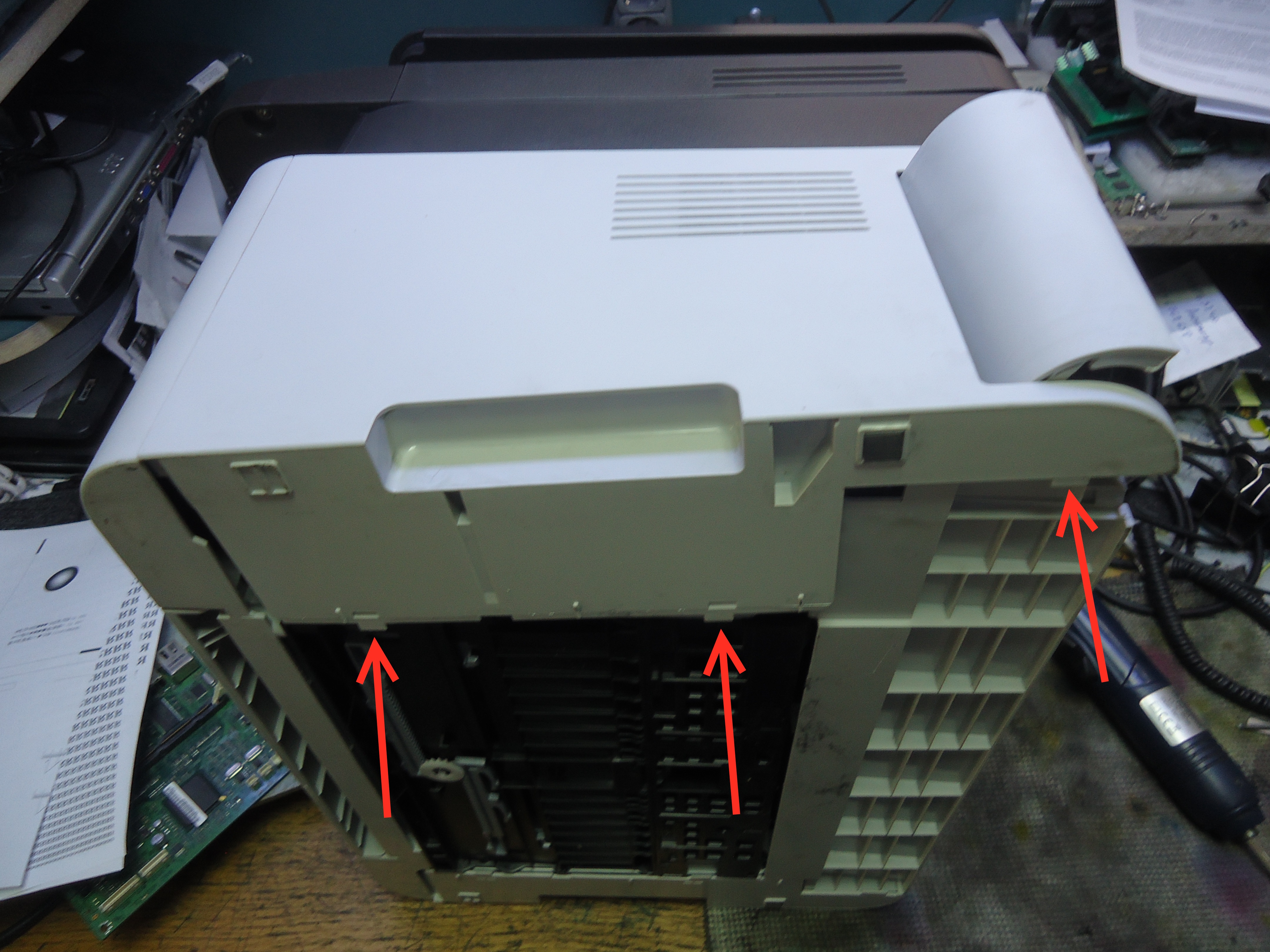 Откручиваем его, и подддев в местах отмеченных стрелками, отдираем "шкуру" поверженного врага (еще одна защелка там где выкручивали хитрый болтик из хитрой жо.... боковины)...