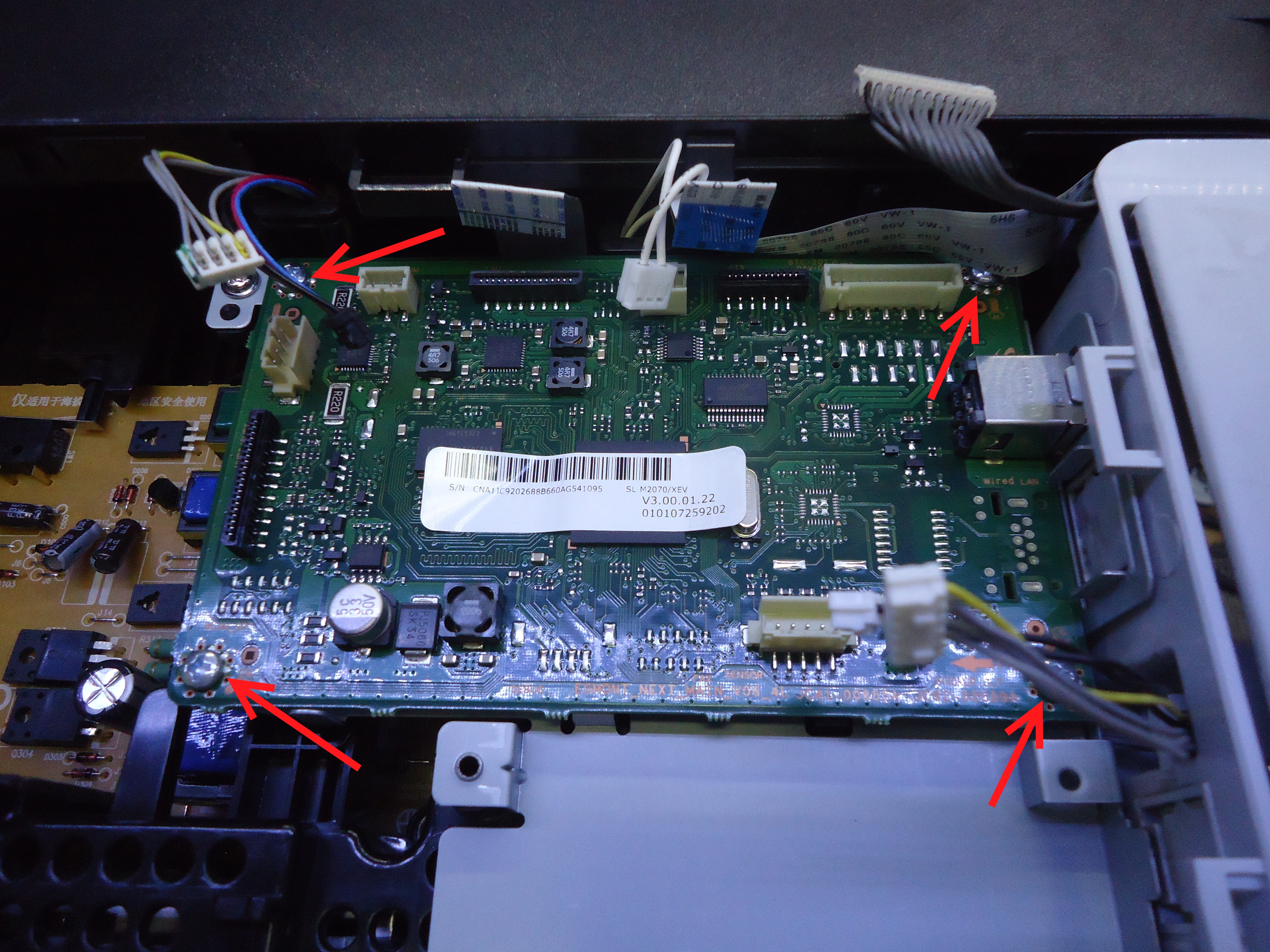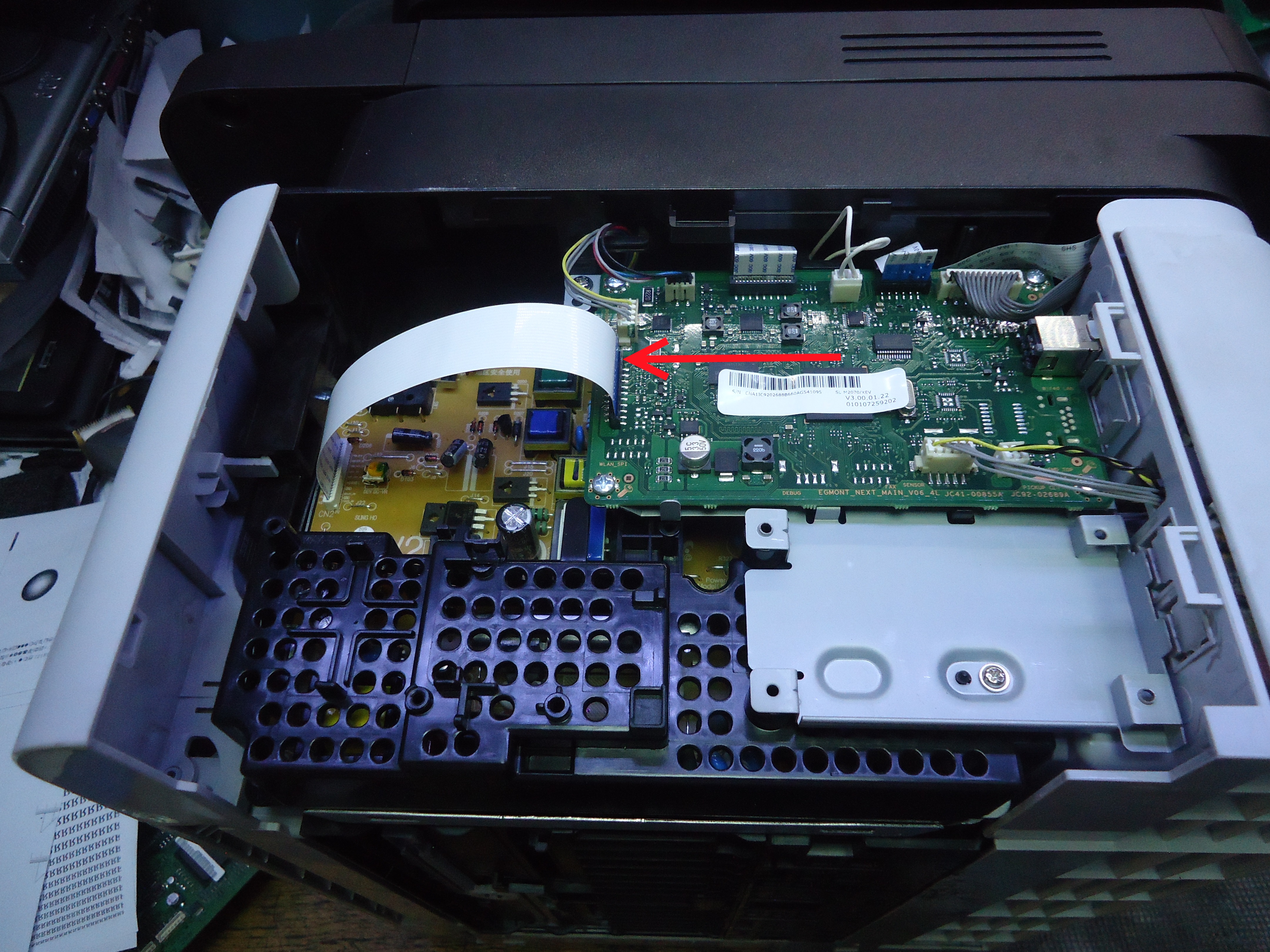 После операций приведенных выше снимаем шлейф с БП...(отмеченный стрелкой)