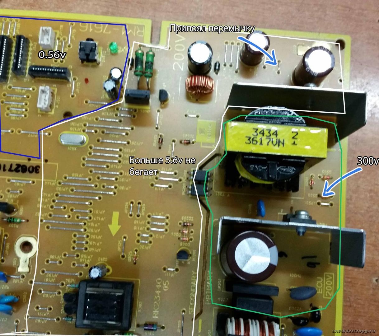 Не включается принтер HP P1606, бок питания rm1 7616/