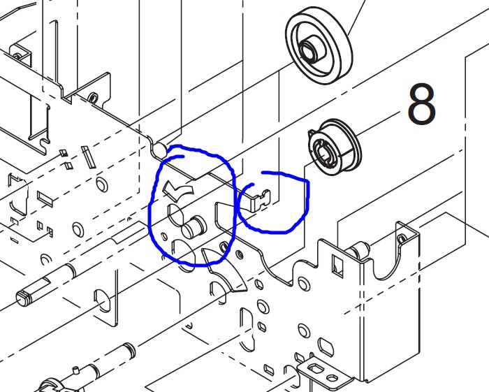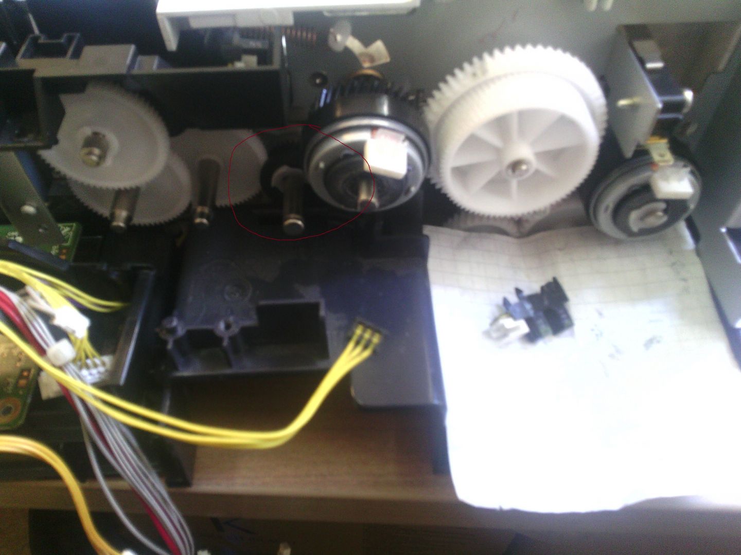 Здравствуйте всем!Просьба откликнуться не равнодушным мастерам: в апд застряла бумага, чтобы её извлечь пришлось разобрать часть АПД, после из посадочного места, которое до сих пор я не могу обнаружить вылетел датчик(изображение во вложении), а также появился не понятный шум возникающий по причинам мне не ясным, со стороны черной шестерни(что она делает, я тоже незнаю). Просьба помочь разобраться.