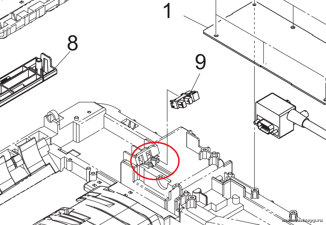Где-то сбоку. Не факт, что именно закрытия, может еще распознавание формата бумаги. Это надо партс каталог смотреть. До какого состояния вы разбирали? Только кожух сбоку сняли? А шумит как? Шуршит, хрустит, скрипит, трещит?