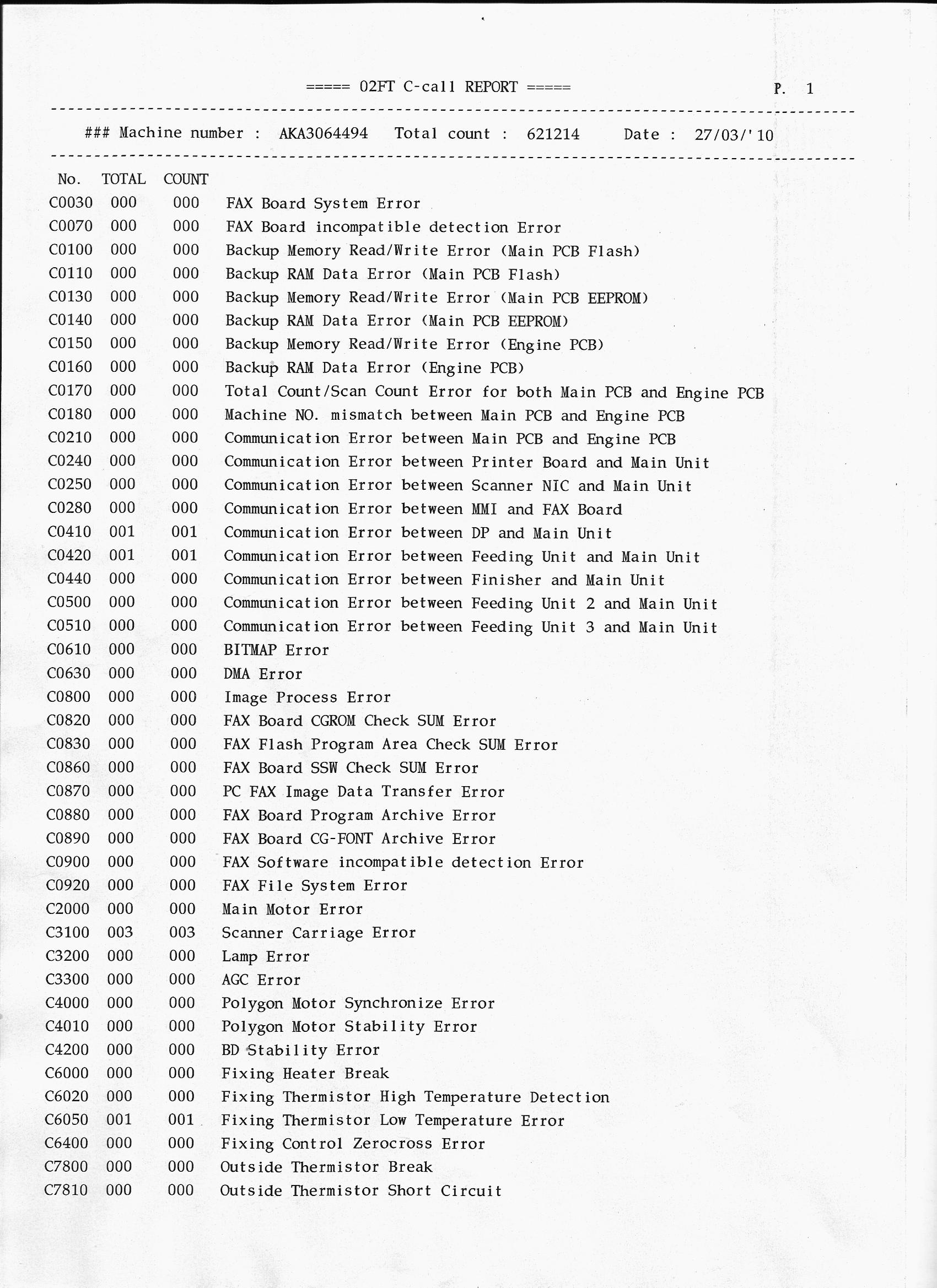 Press the stop/clear key. The screen for selecting a maintenance item No. is displayed.