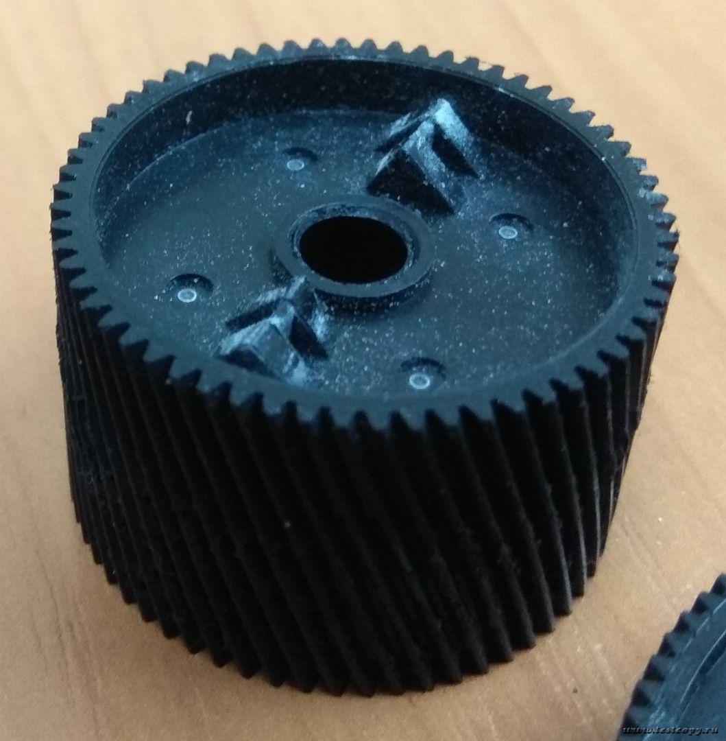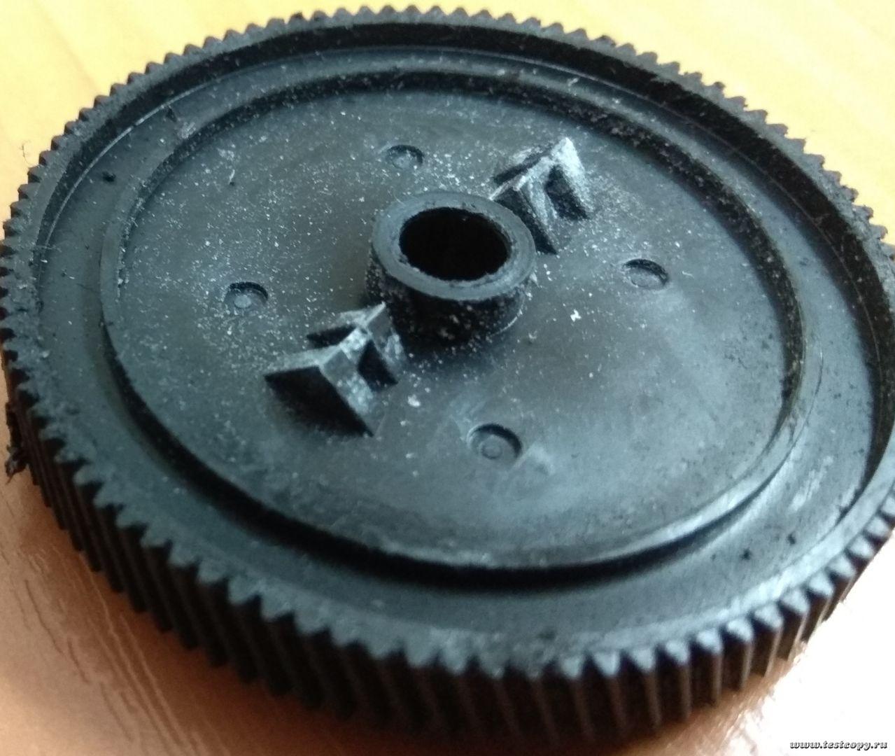 Что интересно, так это то что зацепы сделаны в форме треугольников, что само по себе предрасполагает к проскальзыванию. Хотя конечно может быть так сделано с целью предохранения от поломок в случаях заклинивания где-либо. Т.е. шестерни не рассчитаны на проскальзывание при штатной работе аппарата, но в случае, когда что-то ломается и клинит, такая форма зацепов срабатывает как предохранитель. Так ли это?