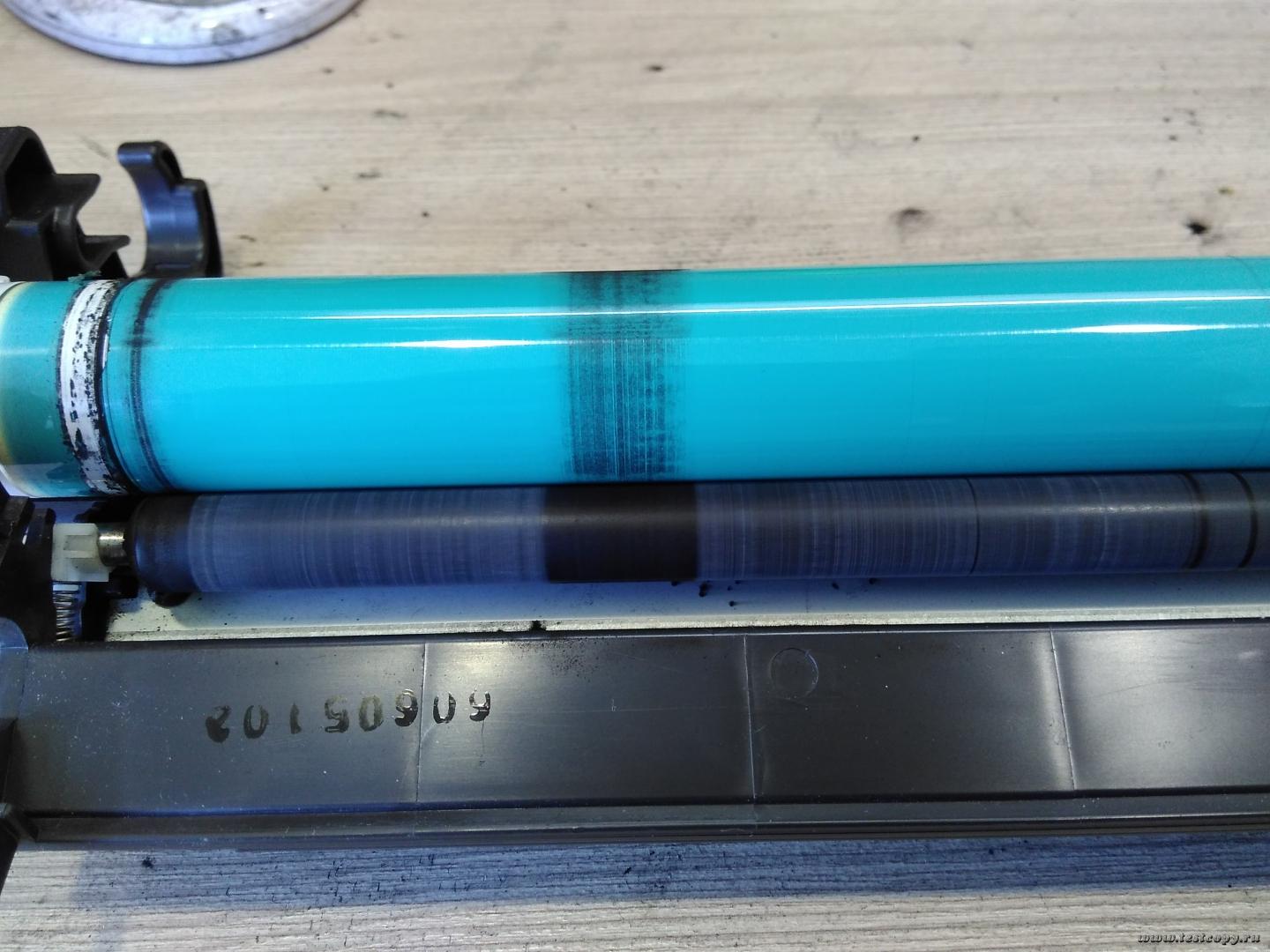 Менялось в драме на новое: ракель, вал заряда, барабан. Проставки под ракелем на месте. Так же пробовали другой Б/У драм. Дефект проявляется примерно через 30-40 страниц. Снимаем, чистим ролики и опять можно несколько десятков страниц нормальных напечатать. Скан и фото прикрепляю. Возможно кто то сталкивался, куда копать, есть ли смысл покупать новый драм?