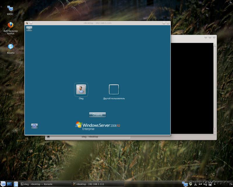 Все вроде нормально, но экран маловат. Вам так не кажется? Исправим досадную неприятность. Добавим еще один параметр для подключения - укажем желаемое разрешение рабочего стола.