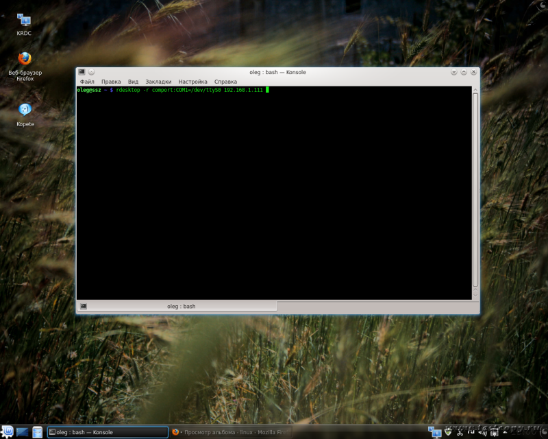 rdesktop -r comport:COM1=/dev/ttyS0 192.168.1.111