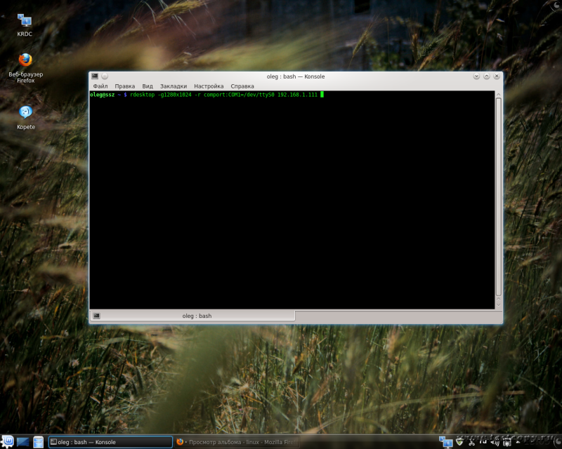 rdesktop -g1280x1024 -r comport:COM1=/dev/ttyS0 192.168.1.111