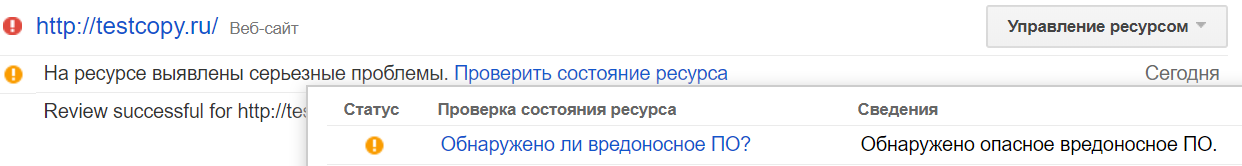 Проверьте файл hosts при получении сообщения, что сайт заражен, так ведет себя вирус, он этот файл правит, сайт, конечно тут не при чем, проблема в том, что в вашей системе вирус, что то типа URL:Mal