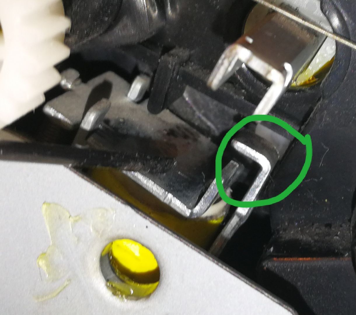 Ну в общем, починил... Действительно флажок прилипал к катушке. А вот этот скотч нанесен не на сам флажок, а на крючок ограничитель (на фото выделено) Представляет из себя что-то типа черного китайского термоскотча. Или типа черной жвачки... Часть этой жвачки попала на сердечник соленоида и флажок приклеивались к ней. Я удали его полностью ( хорошо смывается спиртом). Менять ни на что не стал... Работает принтер, теперь замечательно.