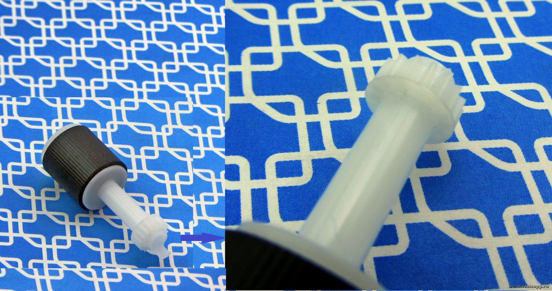 Там не в резинке дело, на фотке видно, что язычёк который контачит с осью выломан, ролик не прокручивается. Подумываю попробовать приклеить к оси которая его крутит, но снять его потом не получится, только ломать.