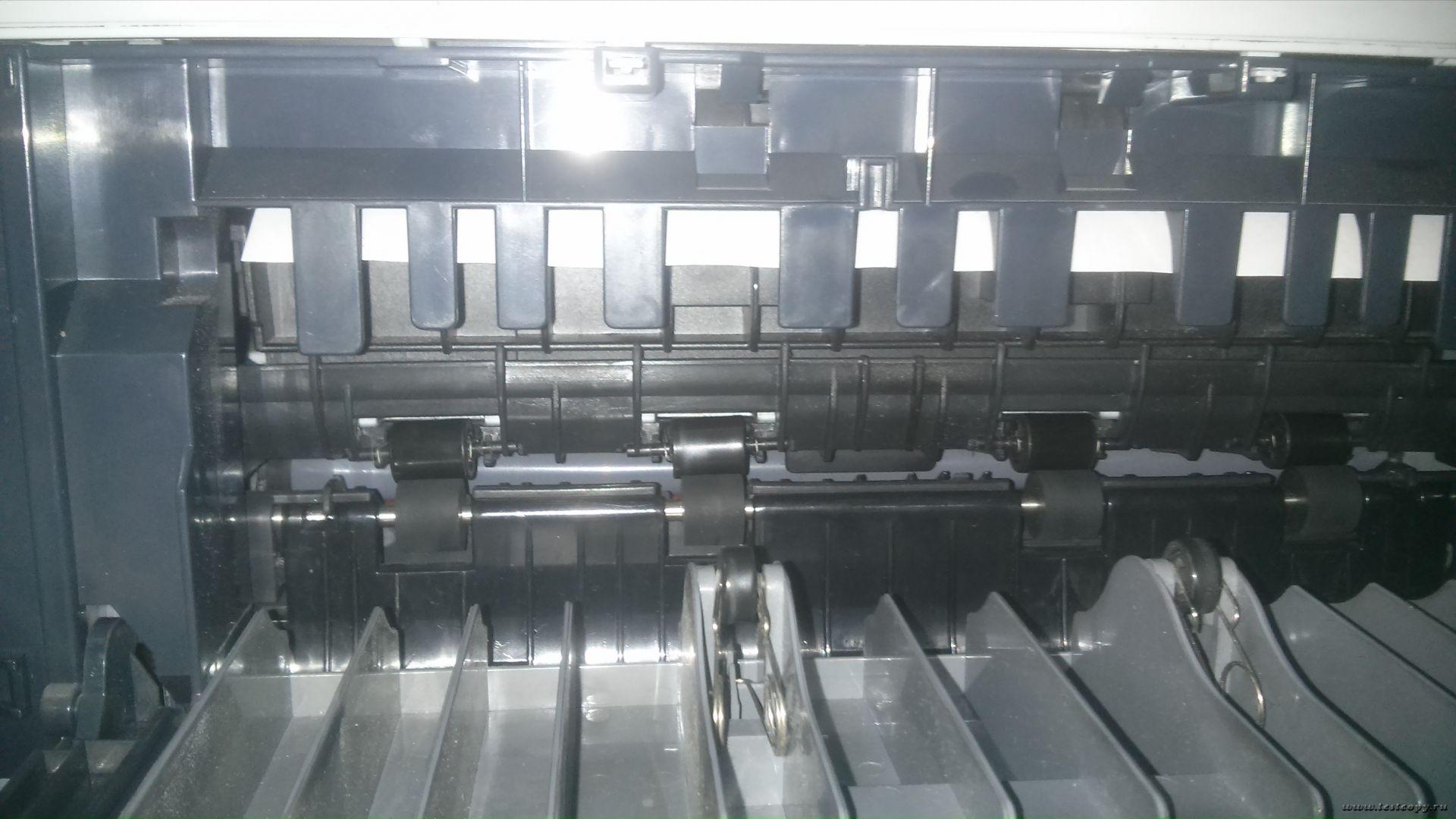 принтер прошел 150000. заменены бушинги выходного вала. проблема возникает при двухсторонней печати, односторонняя отрабатывает без проблем. При попытке листа уйти обратно, вал выхода не пытается затянуть его.