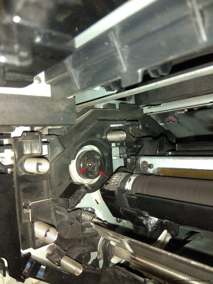 Вобщем выяснились новые подробности. Погонял аппарат с открытой боковой дверцей. Оказалось, что фотобарабан во время кручения периодически останавливается и от этого на распечатке появляются пропуски. При этом, когда фотобарабан стопорится, происходит какой-то стук.