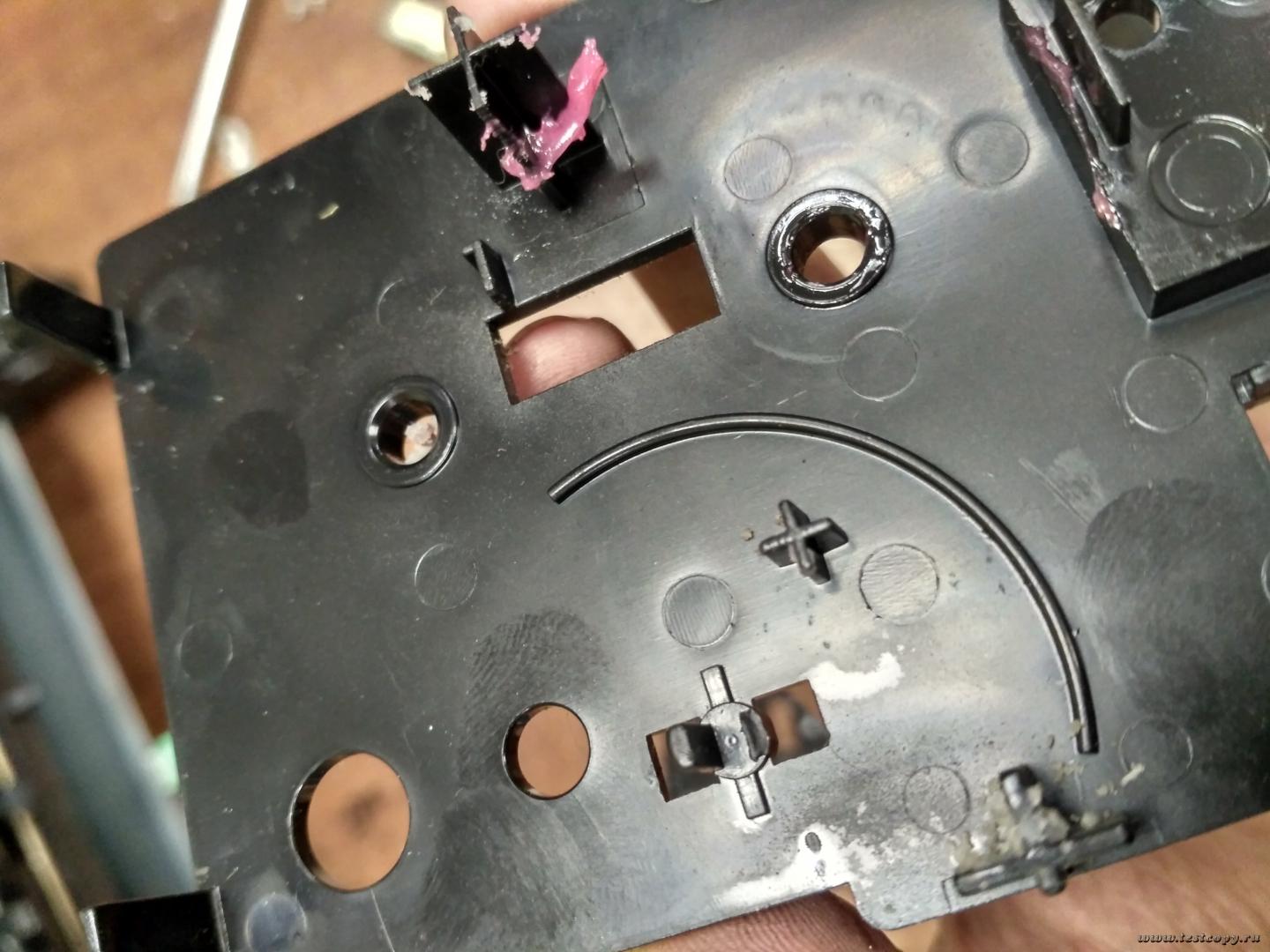 Но что-то пошло не так и лента накрутилась не полностью с обрывом сомой ленты по середине, оставшиеся часть осталась под звездочкочкой лишь на половину открыв отверстие для подачи тонера.