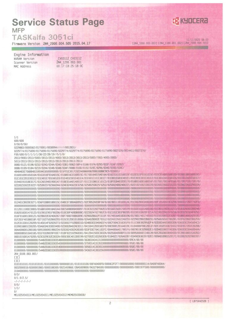 Добрый день! МФУ Kyocera TaskAlfa 3050ci при цветной печати (копировании) начал печатать розовый фон. При печати в чёрно-белом режиме фона нет. Тонер используется оригинальный, пробег аппарата 227441 страниц.
