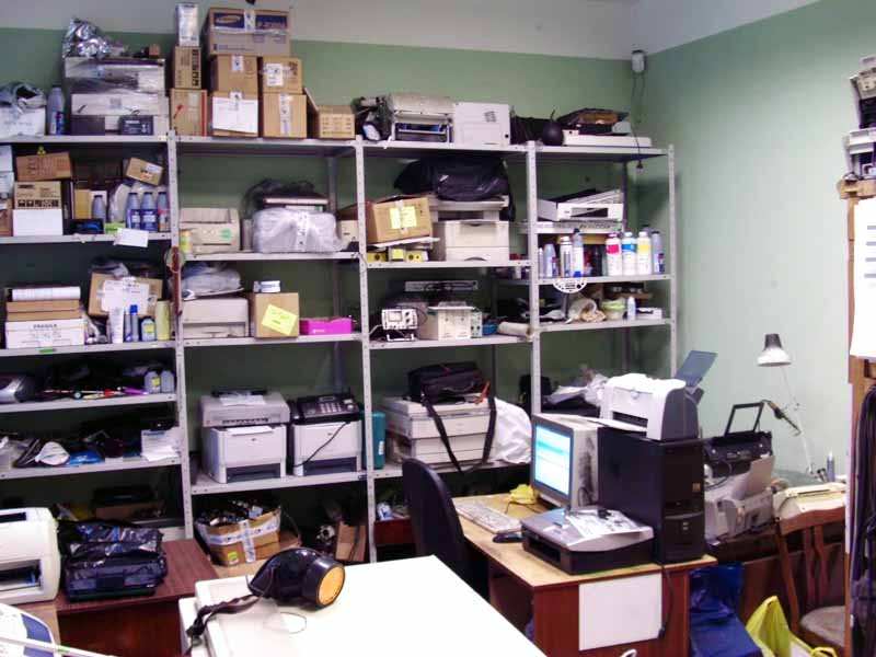 Заправка совмещена с сервисом, в соседнем помещении возимся с компами и другой другой техникой, склад отдельно, места мало поэтому приходится оптимизировать пространство, вытяжка самодельная, переключатели - один к пылесосу (он стоит на полу и тянуться к его переключателю неудобно), два других - к розеткам в столе (к одной программатор постоянно подключен к другой - доп.освещение и небольшая бормашинка для создания различных технологических