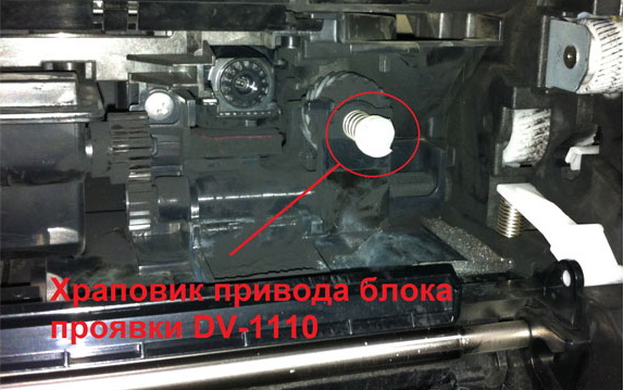 Такая же проблема только на принтере fs-1125, выяснил, что тонер не подаётся в блок проявки. Шестерни картриджа и на блоке проявки не крутятся. Подскажите, если кто сталкивался с такими моделями, как снять храповик привода блока проявки, находящийся в принтере (смотрите во вложении). Вот тут http://www.startcopy.su/forum/m/07979.html написано, что дело в нём, но парень не написал как его снял.Вернуться в Принтеры, МФУ, факсы, копиры формата A4