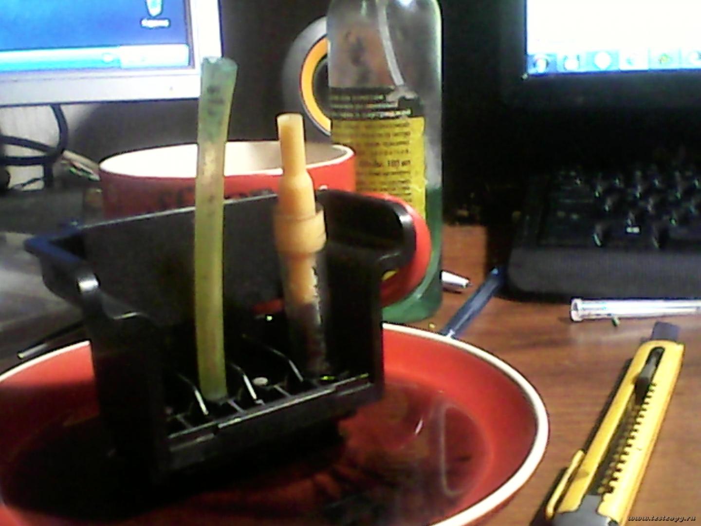 Просто заправляю и потом опускаю соплами в емкость с отмочкой на 0.5-1 см. и пусть стоит час-день.