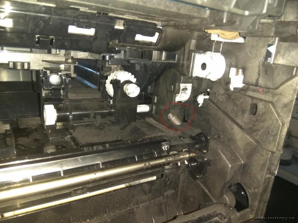 Всем привет! После замятия бумаги, извлечения оной из аппарата стал писать ошибку c6000 стал проверять внутри, обнаружил болтающуюся пружинку, очевидно, откуда то вылетела вот где она была найдена : подскажите, куда ее надо закрепить?