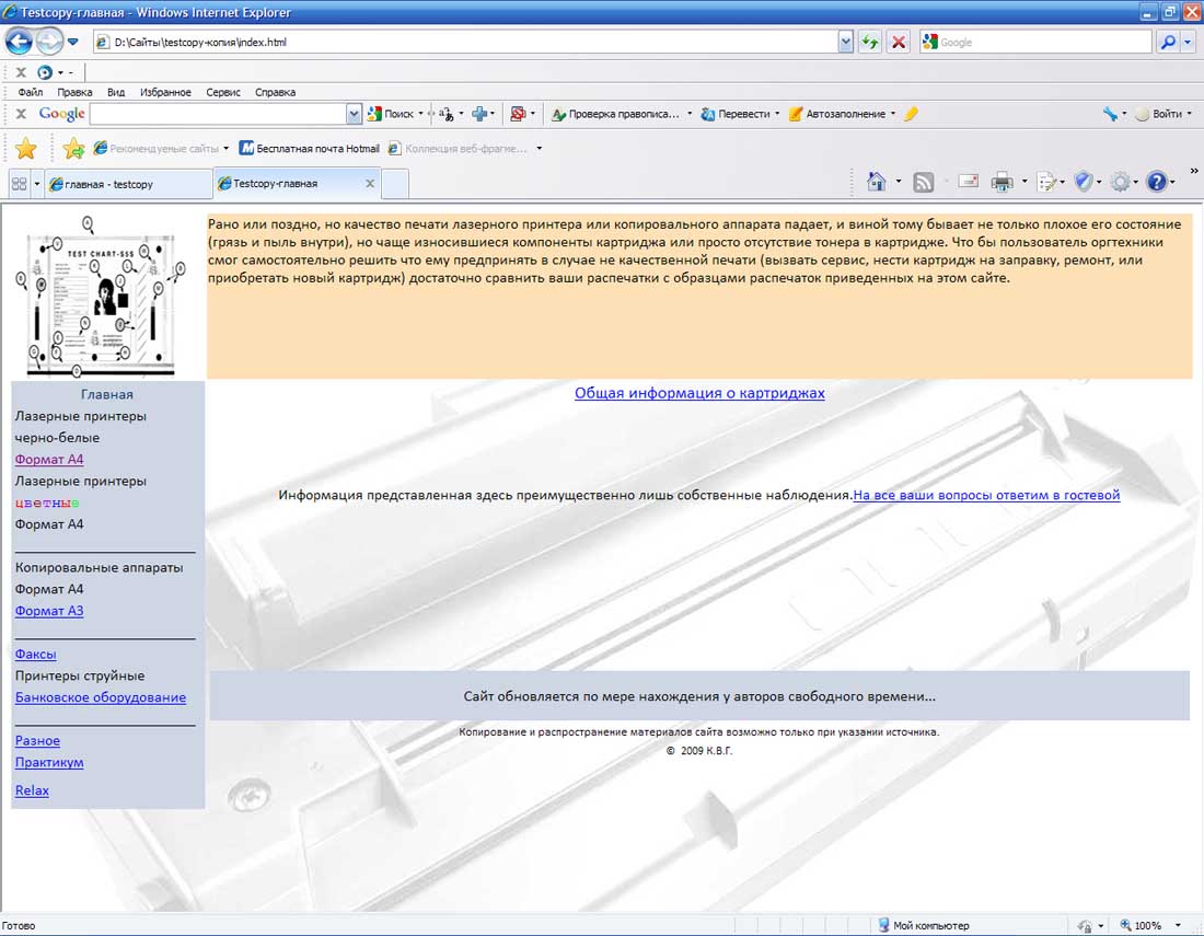 Нашел в архиве, какой раньше дизайн был у сайта(всплакнул даже :-) ), вот скрины: Раньше был адрес testcopyspbru, поэтому такой адрес остался на некоторых картинках.